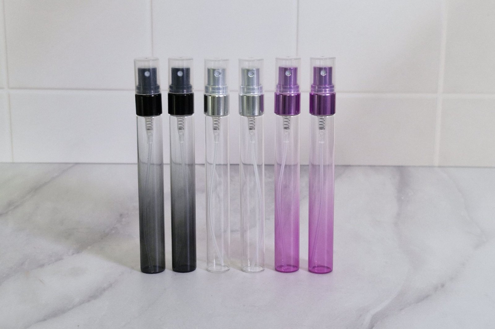 Botella de cristal con aspersor para room spray o perfume de 10ml en diferentes colores.