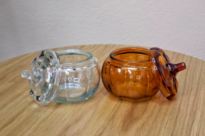 Este frasco con forma de calabaza, adornado con ranuras que le dan un efecto dimensional único, incluye un tallo corto en la parte superior que funciona como perilla para abrirlo con facilidad. Su diseño de vidrio translúcido lo convierte en el recipiente perfecto para crear una vela encantadora. ¡Colócala en tu encimera y añade un toque festivo, decorativo y funcional a tu hogar!