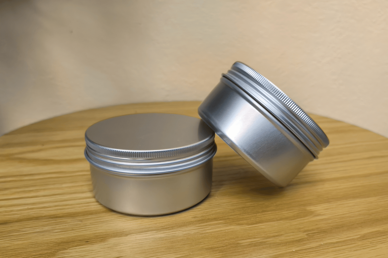 Envase metálico ligero y resistente, ideal para velas en contenedor, bálsamos o productos cosméticos. Su diseño moderno con tapa roscada ofrece un cierre seguro que conserva la fragancia y protege la cera.